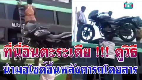 ที่นี่อินตะระเดีย !!! ดูวิธีการเอามอเตอร์ไซค์ ขึ้นบนหลังคารถโดยสารซะก่อน