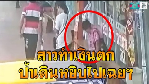 สังคมอยู่ยาก สาวทำเงินตก !! ป้าเดินหยิบไปเฉยๆ (มีคลิป)