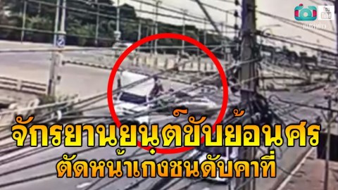 จักรยานยนต์ขับย้อนศร !! ตัดหน้าเก๋งชนดับคาที่