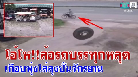 โอ้โห!!ล้อรถบรรทุกหลุด เกือบพุ่งใส่ลุงปั่นจักรยาน