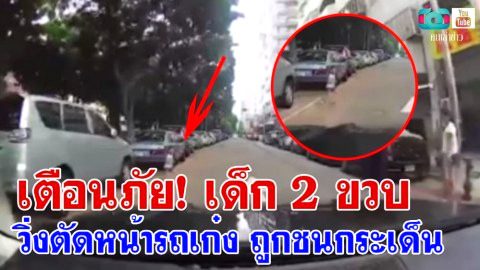 เตือนภัย! เด็ก 2 ขวบ วิ่งตัดหน้ารถเก๋ง ถูกชนกระเด็น
