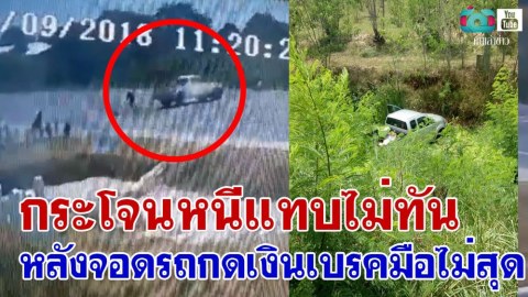 กระโจนหนีแทบไม่ทัน หลังจอดรถกดเงิน แต่ดึงเบรคมือไม่สุด