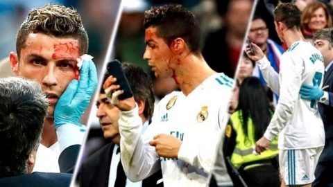 ชมคลิป “โรนัลโด้” ปาดเลือดบนใบหน้าเดินออกจากสนาม