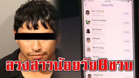 หื่uจัด!! หนุ่มวัย 21 คิดลวงสาวน้อยวัย 8 ขวบ ให้ส่งรูปนู้ดผ่าน Snapchat หวังนัดอึ๊บ