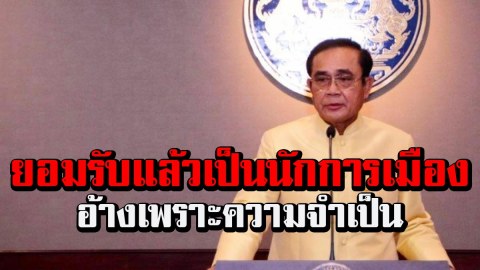 “บิ๊กตู่” ยอมรับแล้วเป็นนักการเมือง อ้างเพราะความจำเป็น พร้อมรับผิดชอบด้วยชีวิต