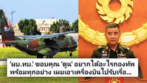‘ผบ.ทบ.’ ขอบคุณ ‘ตูน’ อยากได้อะไรกองทัพพร้อมทุกอย่าง เผยเอาเครื่องบินไปรับเรื่องเล็กน้อย