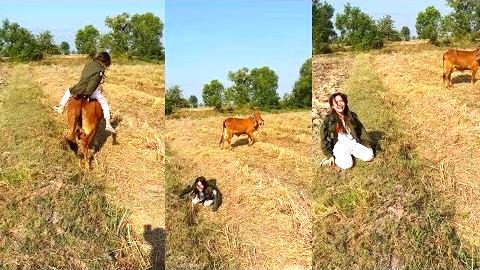 สาวสวยดื้อ!!ลองขี่วัวครั้งแรก__แต่ปรากฏว่า.....‼️ (clip)