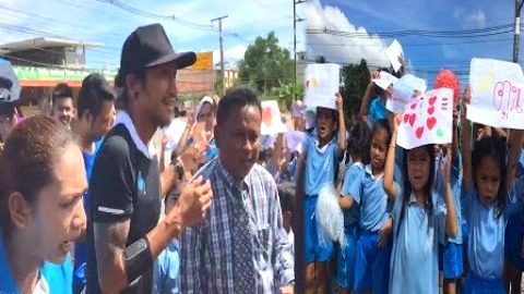 ความน่ารักของพี่ตูน ❤️เด็กอนุบาลออกมาส่งกำลังใจให้พี่ตูนอีกฝั่งของถนน (clip)