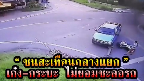 ชนสะนั่นกลางแยก | เก๋ง-กระบะไม่ยอมชะลอเมื่อถึง 4 แยกวัดใจ ชนกันสนั่น (CLIP)