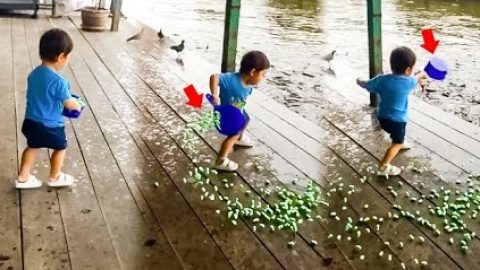 แห่ดูยอดวิว4ล้าน หนูน้อยควงสวิงให้อาหารอย่างสวย แต่หกหมดปลาได้แต่มองปริบๆ T_T