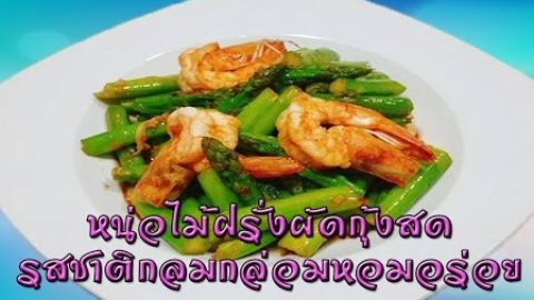 หน่อไม้ฝรั่งผัดกุ้งสด รสชาติกลมกล่อมหอมอร่อย