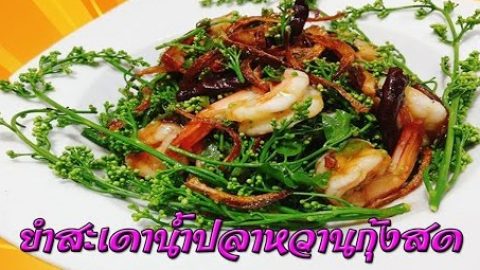 ยำสะเดาน้ำปลาหวานกุ้งสด
