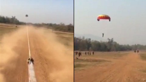 การขึ้นโดดร่มแบบพาราเซล ของ รด.ปี4 ในอีกมุมนึง (clip)