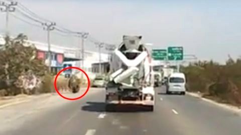 เกือบไปแล้ว !!! รถพ่วงล้อหลุด วิ่งประคองเกือบไม่ทัน สุดท้ายปลอดภัยทุกคน