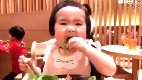 เห็นผักไม่ได้ !!! หนูน้อยคนนี้กินผักโหดมาก ฟาดเรียบไม่ให้เหลือ