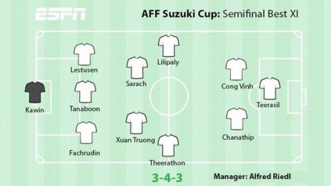 แข้งช้างศึก 6 คน ยอด พาเหรดติดทีมยอดเยี่ยม ซูซูกิคัพ รอบ 4 ทีมสุดท้าย