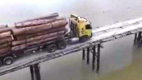 สะพานชีวิต !!! ขับบรรทุกพ่วงข้ามสะพานไม้ !!! สงสัยค่าจ้างคงแพง