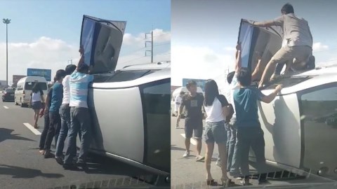 นี่แหล่ะคือคนไทย เกิดมาพร้อมกับคำว่าน้ำใจ !!! ร่วมใจช่วย เก๋งเกิดอุบัติเหตุ บนทางด่วน" ศรีนครินทร์