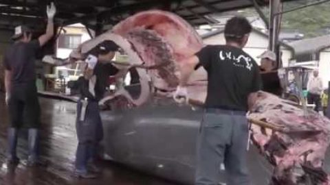 ใจไม่ถึงอย่าดู !!! วิธีการแล่เนื้อปลาวาฬยักษ์ 30 นาที 30 วินาทีหมดตัว