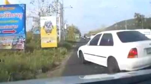 เก๋งรีบจัด !!! มุดไหล่ทางซ้าย รูดกระจกข้างไปสามคันรวด !!! แน่นอนจริงๆ คงรีบจริง