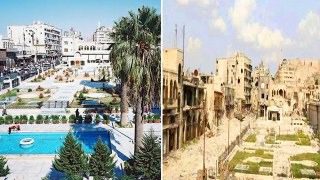ภาพเปรียบเทียบสถานที่ ที่เดียวกันในอดีตและปัจจุบัน ณ เมืองAleppo ประเทศซีเรีย ก่อนและหลังการเกิดสงคราม