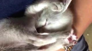เจอลูกแมวยังไม่ลืมตาครึ่งเปอร์เซียขนสีควันบุหรี่ข้างถนน