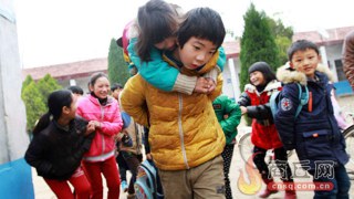 พี่ชายที่แสนดี ให้น้องสาวขี่คอไปโรงเรียนทุกวัน
