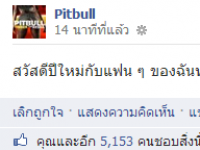 Pitbull เซอร์ไพรส์แฟนคลับชาวไทยโดยการโพสคำว่า "สวัสดีปีใหม่" ลง Facebook