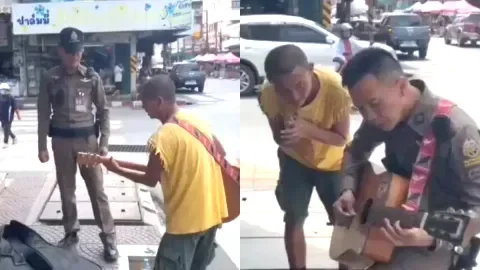 รองธีร์ ตร.ปะทะ น้องธีร์ วณิพก เปิดคอยเสริต์ทางเท้า