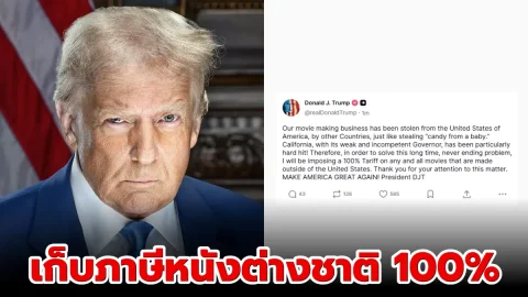 "ทรัมป์" สั่งเก็บภาษีสร้างหนังนอกมะกัน 100%