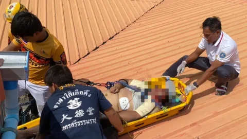 กู้ภัยช่วยระทึก! ช่างประปาถูกไฟซ๊อตหมดสติดาดฟ้าชั้น 4 โรงเรียน
