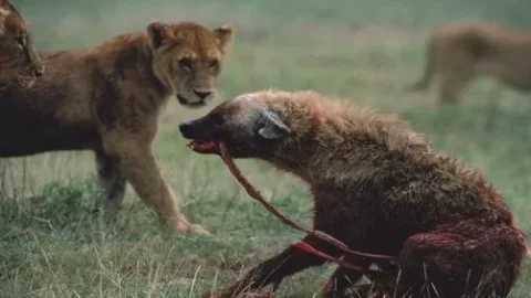 ไฮยีนากินไส้ตัวเองเพื่อเอาชีวิตรอดจากฝูงสิงโต
