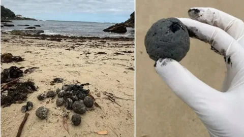 ชาวบ้านพบก้อนน้ำมันดิน ลอยเกลื่อนหาดซิดนีย์