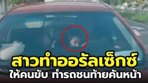 ผู้หญิงคนหนึ่งทำออsัลlซ็กส์ให้กับคนขับรถ จนชนท้ายคันข้างหน้า