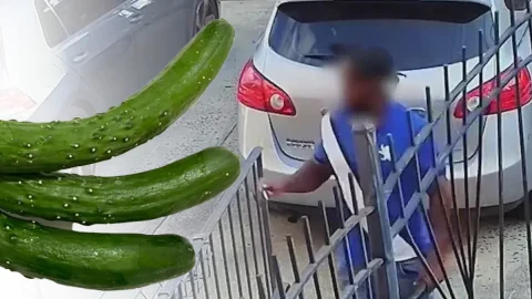 สาวอเมริกันเช็ควงจรปิด ตกใจพบชายคนหนึ่งแอบเข้ามาในลานจอดรถ แล้วใช้แตงกวากับตัวเอง