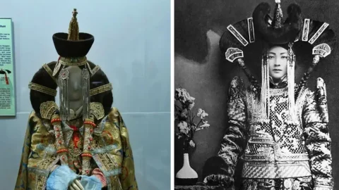 หญิงสาวคัลคาในชุดประจำชาติมองโกเลียในช่วงทศวรรษ ที่ 1890