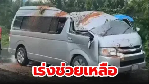 จนท. เร่งช่วยเหลือ ลมแรง ต้นไม้ทับใส่รถตู้รับส่งนักเรียน เจ็บ 14 ราย
