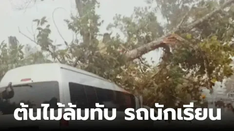 ระทึก! พายุแรงทำต้นไม้ล้มทับรถตูนักเรียน เจ็บ 14 ราย