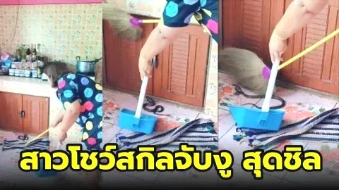 สาวโชว์สกิลจับงูให้ดูเป็นบุญตา..นี่แหล่ะน่ะเรียกว่าคนใจถึงพึ่งได้
