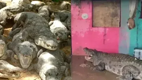น้ำท่วมหนักที่รัฐกุชราต อินเดีย ทำจระเข้ไม่มีที่อยู่