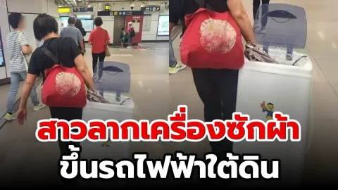 แบบนี้ก็ได้เหรอ..สาวหิ้วเครื่องซักผ้า ขึ้นรถไฟฟ้าใต้ดิน
