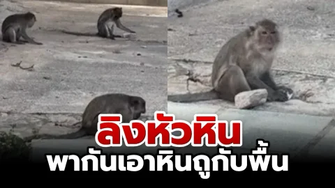 "ลิงหัวหิน" พากันเอาหินถูกับพื้น..ทำเอางงกันทั้งโซเชียล