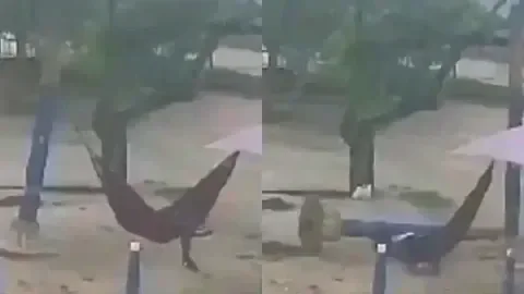 พ่อค้าริมถนนในโคลอมเบียผูกเปลญวนนอนเล่น ถูกเสาล้มทับเสียชีวิต
