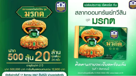 สุดคุ้ม! ฝากแค่ 500 ลุ้นรวย 20 ล้านทุกเดือน ธ.ก.ส. เปิดตัวสลากออมทรัพย์ทวีสิน ชุดมรกต เริ่ม 17 ส.ค.นี้