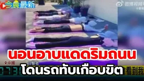 สาวจีนนอนอาบแดดกลางถนนตามเทรนด์ จนเกิดอุบัติเหตุ โชคดีที่ไม่ร้ายแรง