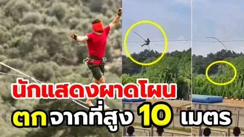 นักแสดงผาดโผนตกจากที่สูง 10 เมตร ในงานมหกรรมสัตว์ที่จิ๋นหู