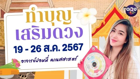 ทำบุญ เสริมดวง ตั้งแต่วันที่ 19 - 26 ส.ค. 2567 พยากรณ์โดย อ.ปอมมี่ คเณศศาสตร์