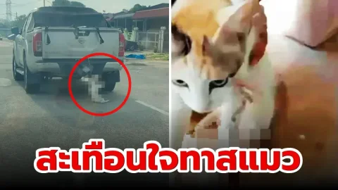 จิตใจทำด้วยอะไร? กระบะถูกแม่แมว ติดกับท้ายรถ ถูกลากไปตามถนน