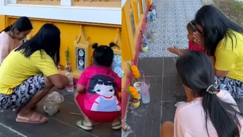 โซเชียลสุดประทับใจ!สาวใหญ่เมืองคอน จูงมือลูกไหว้แม่หน้าโกศ
