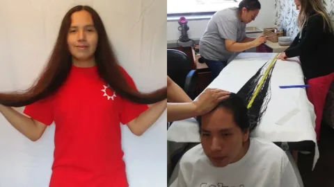 ชายชาวอเมริกันพื้นเมืองทำลายสถิติผมยาวที่สุด